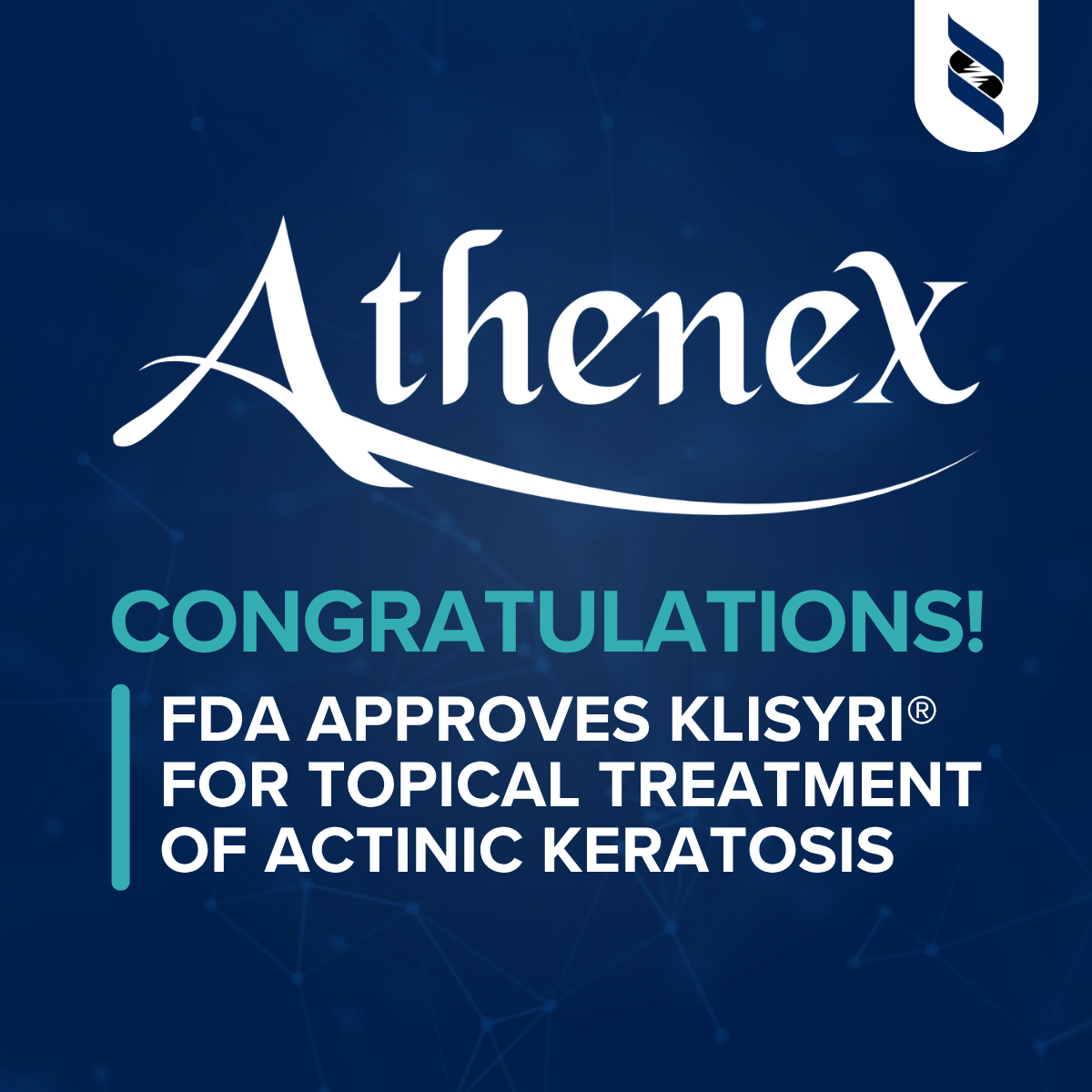 Actinic keratosis is a chronic, precancerous skin condition caused by long-term sun exposure and affects as many as 1 in 4 adults. If left untreated, it can progress into squamous cell carcinoma. Klisyri® delivers a convenient, once-daily topical treatment over 5 days, the shortest regimen available to date for AK, with a favorable safety profile and no study withdrawals due to adverse events.